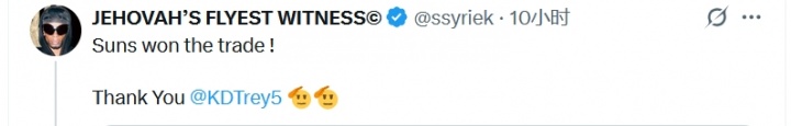網(wǎng)友配文道:“這筆交易是太陽贏了,謝謝你@杜蘭特”