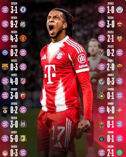 拜仁已經(jīng)連續(xù)22個(gè)賽季在歐冠首輪比賽取勝,他們面對(duì)的對(duì)手包括了巴薩、國米、曼城、曼聯(lián)等隊(duì)。上賽季,拜仁在歐冠聯(lián)賽階段首輪比賽曾以9-2的比分血洗薩格勒布迪納摩。