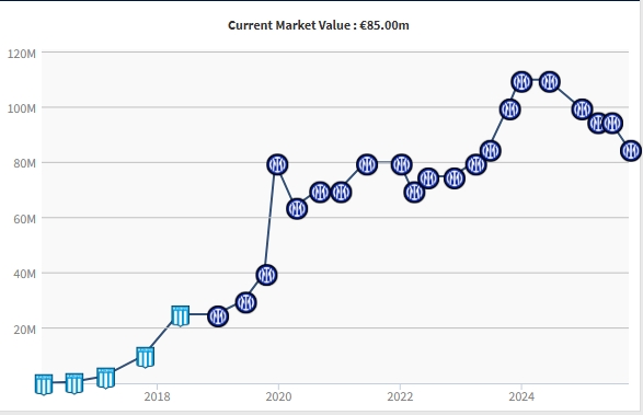 “他仍是聯(lián)賽中最穩(wěn)定的前鋒之一,但市場動(dòng)態(tài)和風(fēng)格偏好的轉(zhuǎn)變,降低了他未來維持最高市值的可能性?!?/p>