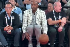 技癢難耐!卡特觀賽席上拿球拍個不停