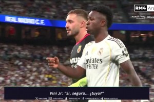 黃潛門將試圖干擾維尼修斯,姆巴佩看到后一把推開他