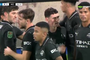 C羅情緒低落自言自語,B費(fèi)看見后趕緊上前擊掌鼓勁